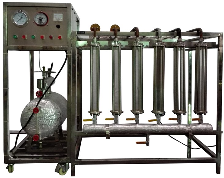 紫銅傳熱管道(銅裸管、涂黑管、翅片管、玻璃絲棉保溫管、鋸末保溫管、鍍鉻管各一組),調(diào)節(jié)閥門組,蒸汽發(fā)生器,熱風(fēng)幕風(fēng)機(jī),壓力控制器及溫度保護(hù)裝置,不銹鋼臺架及控制屏等。