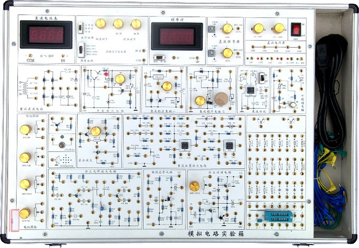 模擬電路實驗箱是根據(jù)《高等工業(yè)學(xué)校電子技術(shù)基礎(chǔ)》教學(xué)大綱中確定的教學(xué)實驗要求為基礎(chǔ),汲取了眾多專業(yè)教師的教學(xué)經(jīng)驗,并綜合了眾多同類產(chǎn)品的優(yōu)點而設(shè)計的。它函蓋了《模擬電子技術(shù)基礎(chǔ)》課程全部實驗內(nèi)容,既為初學(xué)者提供了驗證性實驗電路,又為課程設(shè)計提供了擴(kuò)展平臺。