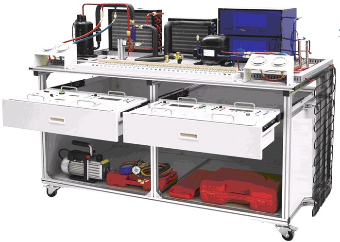 1.該裝置集制冷空調(diào)系統(tǒng)安裝、冰箱系統(tǒng)安裝、制冷系統(tǒng)電接線、壓力檢漏、抽真空、 充注制冷劑與運行調(diào)試于一體,包含了制冷系統(tǒng)維修的全部步驟,能滿足實訓教學、實際工程訓練及職業(yè)技能競賽的需要。