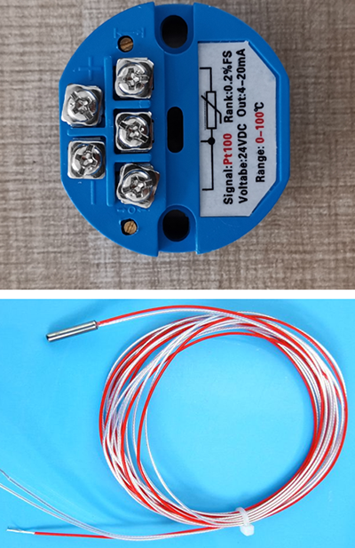 特點(diǎn):Pt100傳感器精度高,熱補(bǔ)償性較好,用于做標(biāo)準(zhǔn)校驗(yàn)用熱電阻。變送器部分供電DC24V,輸出4-20mA DC通信功能,用于測量加熱模塊內(nèi)部的溫度,是工業(yè)現(xiàn)場中常用的一溫度測量儀表。精度為0.5級