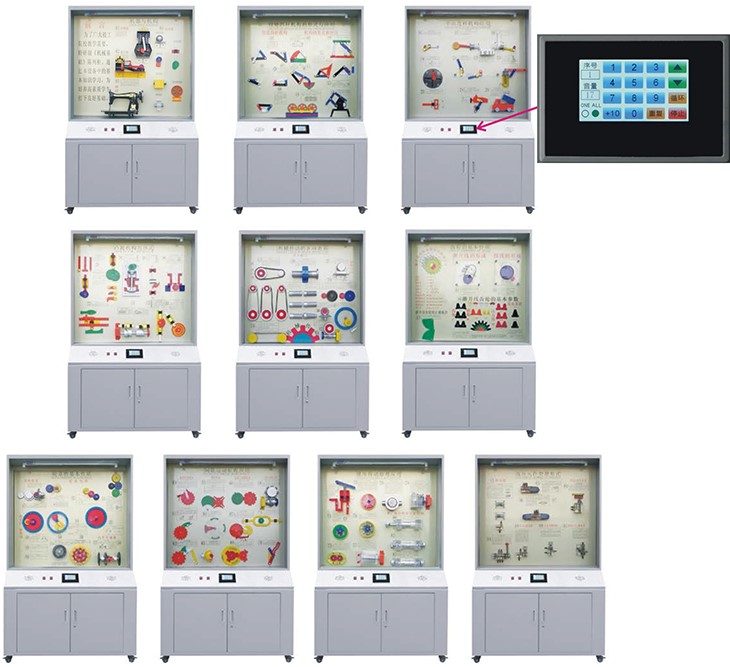 根據(jù)全國(guó)技工學(xué)校機(jī)械類通用教材《機(jī)械基礎(chǔ)》示教陳列柜是一套電化教學(xué)設(shè)備。本陳列柜共分十個(gè)柜,陳列柜通過機(jī)械模型或?qū)嵨,配合相?yīng)的圖文資料,形象地展示與解說機(jī)械基礎(chǔ)的基本知識(shí),加強(qiáng)學(xué)生對(duì)通用機(jī)械基礎(chǔ)的類型、結(jié)構(gòu)特點(diǎn)及其設(shè)計(jì)的感性認(rèn)知,為進(jìn)一步學(xué)習(xí)機(jī)械基礎(chǔ)奠定基礎(chǔ)。