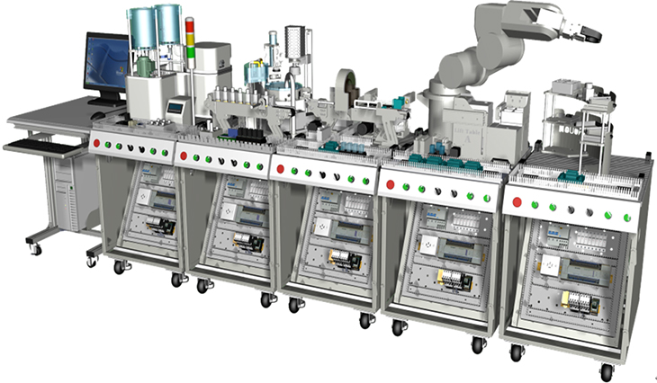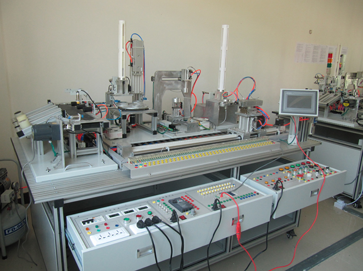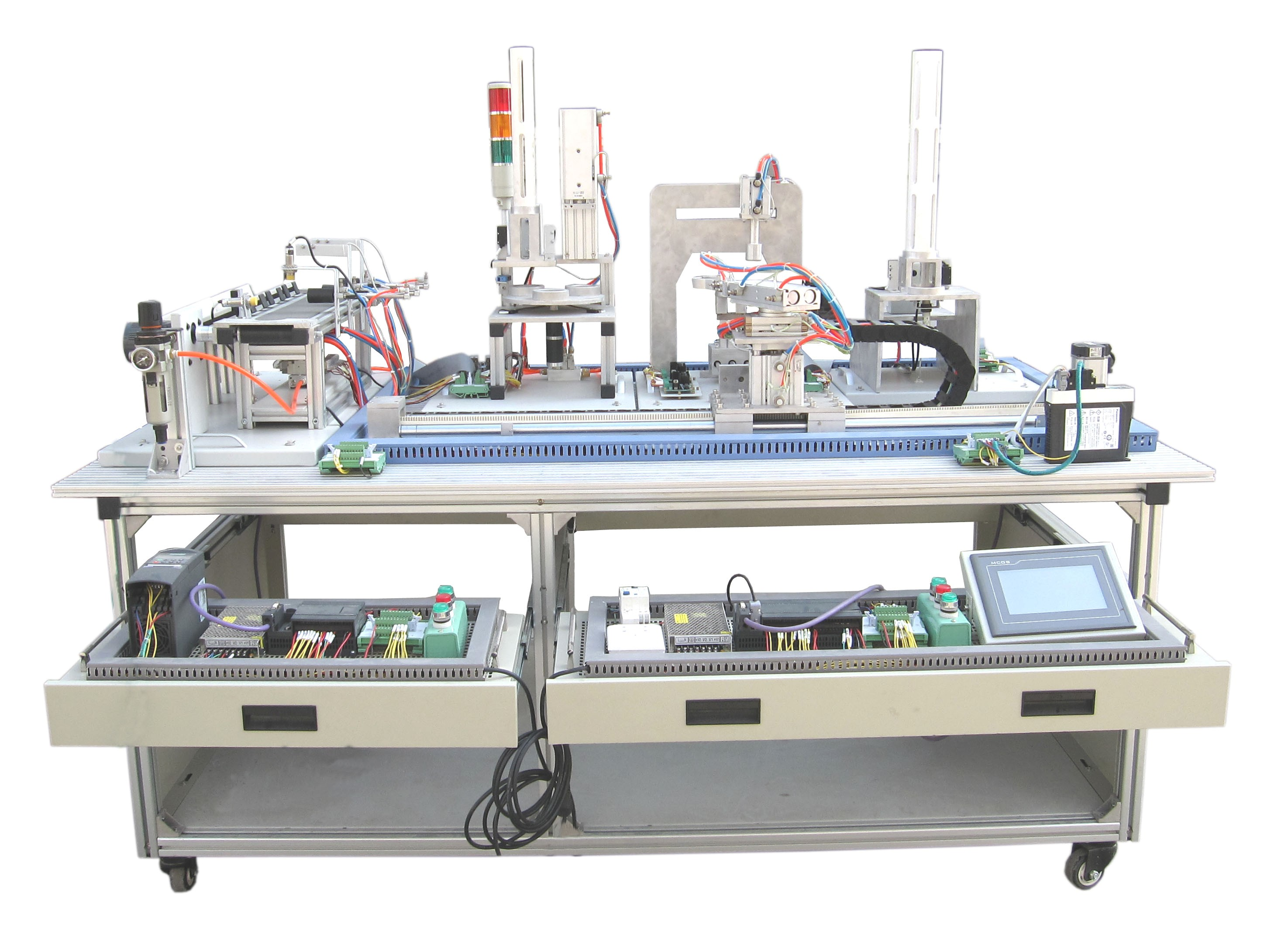 機(jī)電一體化技術(shù)實(shí)訓(xùn)設(shè)備是指機(jī)械技術(shù)、電工電子技術(shù)、微電子技術(shù)、信息技術(shù)、傳感器技術(shù)、接口技術(shù)、信號(hào)變換技術(shù)等多種技術(shù)進(jìn)行有機(jī)地結(jié)合,并綜合應(yīng)用到實(shí)際中去的技能實(shí)訓(xùn)綜合技術(shù),現(xiàn)代化的自動(dòng)生產(chǎn)設(shè)備幾乎可以說(shuō)都是機(jī)電一體化的設(shè)備。自動(dòng)化生產(chǎn)線(xiàn)實(shí)訓(xùn)考核系統(tǒng),可以培養(yǎng)和提高學(xué)生專(zhuān)業(yè)綜合能力,是一種重要的實(shí)訓(xùn)設(shè)備。自動(dòng)化生產(chǎn)線(xiàn)實(shí)訓(xùn)系統(tǒng)、基于PLC技術(shù)的自動(dòng)化生產(chǎn)線(xiàn)實(shí)訓(xùn)考核系統(tǒng),可以培養(yǎng)和提高學(xué)生專(zhuān)業(yè)綜合能力,是一種重要的實(shí)訓(xùn)設(shè)備。自動(dòng)化生產(chǎn)線(xiàn)實(shí)訓(xùn)系統(tǒng)整體包括自動(dòng)供料、檢測(cè)傳輸、檢測(cè)加工、自動(dòng)裝配、自動(dòng)分揀等工序,很好的將機(jī)械技術(shù)、微電子技術(shù)、電工電子技術(shù)、傳感測(cè)試技術(shù)、接口技術(shù)、信息變換技術(shù)、網(wǎng).絡(luò)通信技術(shù)等多種技術(shù)有機(jī)地結(jié)合。該系統(tǒng)中自動(dòng)分揀站的設(shè)計(jì)過(guò)程,包括系統(tǒng)硬件設(shè)計(jì)、PLC控制設(shè)計(jì)和程序設(shè)計(jì)方法,F(xiàn)代化的自動(dòng)生產(chǎn)設(shè)備的最大特點(diǎn)是它的綜合性和系統(tǒng)性,在這里,機(jī)械技術(shù)、微電子技術(shù)、電工電子技術(shù)、傳感測(cè)試技術(shù)、接口技術(shù)、信息變換技術(shù)、網(wǎng)絡(luò)通信技術(shù)等多種技術(shù)有機(jī)地結(jié)合,并綜合應(yīng)用到生產(chǎn)設(shè)備中:而系統(tǒng)性指的是,生產(chǎn)線(xiàn)的傳感檢測(cè)、傳輸與處理、控制、執(zhí)行與驅(qū)動(dòng)等機(jī)構(gòu)在微處理單元的控制下協(xié)調(diào)有序地工作,有機(jī)地融合在一起。可編程序控制器(PLC)以其高抗干擾能力、高可靠性、高性能價(jià)格比且編程簡(jiǎn)單而廣泛地應(yīng)用在現(xiàn)代化的自動(dòng)生產(chǎn)設(shè)備中,擔(dān)負(fù)著生產(chǎn)線(xiàn)的大腦一微 處理單元的角色。因此,培養(yǎng)掌握機(jī)電一體化技術(shù),掌握PLC技術(shù)及PLC網(wǎng)絡(luò)技術(shù)的技術(shù)人材是當(dāng)務(wù)之急。而一套基于PLC技術(shù)的自動(dòng)化生產(chǎn)線(xiàn)實(shí)訓(xùn)考核設(shè)備可以模擬一個(gè)與實(shí)際生產(chǎn)情況+分接近的控制過(guò)程,使學(xué)習(xí)者得到一個(gè)非常接近于實(shí)際的教學(xué)設(shè)備環(huán)境,從而縮短了理論教學(xué)與實(shí)際應(yīng)用之間的距離。自動(dòng)分揀站需完成對(duì)上一單元送來(lái)的已加工、裝配的工件進(jìn)行分揀。使不同顏色的工件從不同的料槽分流的功能。當(dāng)輸送站送來(lái)工件放到傳送帶上并為入料口光電傳感器檢測(cè)到時(shí),即啟動(dòng)變頻器,工件開(kāi)始送入分揀區(qū)進(jìn)行分揀。上海碩博弘揚(yáng)大國(guó)工匠精神, 發(fā)展職業(yè)教育,應(yīng)用教學(xué)設(shè)備,為企業(yè)培養(yǎng)高技能人才,而專(zhuān)業(yè)生產(chǎn):光機(jī)電一體化(自動(dòng)生產(chǎn)線(xiàn))實(shí)訓(xùn)裝置、灌裝自動(dòng)化生產(chǎn)線(xiàn)實(shí)訓(xùn)裝置、工業(yè)自動(dòng)生產(chǎn)線(xiàn)實(shí)訓(xùn)裝置 、工業(yè)控制模擬實(shí)訓(xùn)裝置 、機(jī)電一體化組合實(shí)訓(xùn)平臺(tái) 、機(jī)電一體化綜合實(shí)訓(xùn)考核裝置、自動(dòng)化生產(chǎn)安裝與調(diào)試實(shí)訓(xùn)裝置 、光機(jī)電一體化高速分揀實(shí)訓(xùn)系統(tǒng) 、典型機(jī)電設(shè)備安裝與控制實(shí)訓(xùn)裝置、模塊式柔性自動(dòng)環(huán)形生產(chǎn)線(xiàn)實(shí)驗(yàn)系統(tǒng)(帶機(jī)器人工程型)、立體停車(chē)庫(kù)實(shí)物教學(xué)實(shí)驗(yàn)裝置、機(jī)電一體化柔性生產(chǎn)線(xiàn)加工實(shí)訓(xùn)系統(tǒng)(5站)、網(wǎng)絡(luò)型模塊式柔性自動(dòng)化生產(chǎn)線(xiàn)實(shí)驗(yàn)系統(tǒng)、模塊式柔性自動(dòng)環(huán)形生產(chǎn)線(xiàn)實(shí)驗(yàn)系統(tǒng)(工程型)、柔性生產(chǎn)制造實(shí)驗(yàn)系統(tǒng)(工程型)、現(xiàn)代物流倉(cāng)儲(chǔ)自動(dòng)化實(shí)驗(yàn)系統(tǒng)、運(yùn)動(dòng)實(shí)訓(xùn)裝置、循環(huán)搬運(yùn)自動(dòng)控制實(shí)訓(xùn)裝置、平面雙軸運(yùn)行控制實(shí)訓(xùn)裝置、工業(yè)機(jī)械手實(shí)訓(xùn)裝置、物料分揀實(shí)訓(xùn)裝置、機(jī)械手實(shí)訓(xùn)裝置 、立體倉(cāng)庫(kù)實(shí)訓(xùn)裝置、十字路口交通燈實(shí)訓(xùn)系統(tǒng)、機(jī)電液氣一體化綜合實(shí)訓(xùn)裝置、光機(jī)電一體化高速分揀實(shí)訓(xùn)系統(tǒng)、步進(jìn)伺服控制綜合實(shí)訓(xùn)平臺(tái)、光機(jī)電氣一體化控制實(shí)訓(xùn)系統(tǒng)、 光機(jī)電一體化綜合實(shí)訓(xùn)考核裝置、光機(jī)電一體化實(shí)訓(xùn)考核裝置、光機(jī)電一體化實(shí)訓(xùn)考核裝置、光機(jī)電氣一體化控制實(shí)訓(xùn)系統(tǒng)、自動(dòng)生產(chǎn)線(xiàn)拆裝與調(diào)試實(shí)訓(x