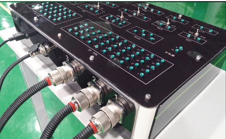 4、機械故障設(shè)置終端通過更換面板上不同功能的插件和短路跨接線實現(xiàn)斷路、線路虛接、對地短路、對正極短路故障設(shè)置,在機械故障設(shè)置終端不變的情況下更換不同的連接線束和檢測面板可實現(xiàn)不同系統(tǒng)的實訓操作;