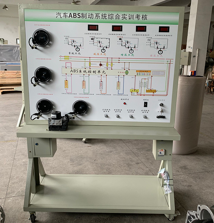 ABS控制單元、ABS電磁閥總成、輪速傳感器、制動開關(guān)等。檢測端子、故障設(shè)置系統(tǒng)、大容量蓄電池或12V開關(guān)電源、大型彩色噴繪電路原理圖、控制面板、可移動臺架、使用說明書及任務(wù)驅(qū)動式實(shí)訓(xùn)指導(dǎo)書等。