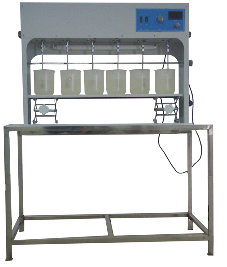 六聯(lián)攪拌裝置、燒杯6個(gè)、不銹鋼升降臺(tái)、不銹鋼框架。