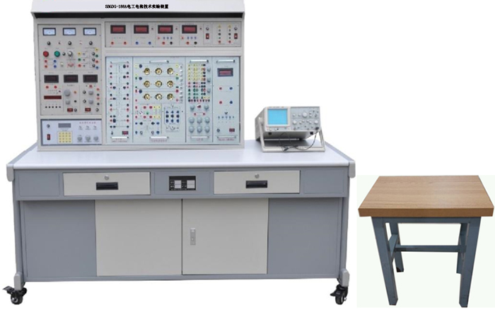 實驗桌為鐵質雙層亞光密紋噴塑結構,桌面為防火、防水、耐磨高密度板;左右設有兩個大抽屜(帶鎖),用于放置工具及資料。右邊設有放置示波器用的可拆卸擱板。