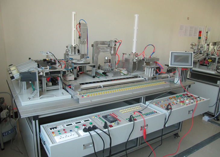 自動生產(chǎn)線實(shí)訓(xùn)裝置由由鋁合金導(dǎo)軌式實(shí)訓(xùn)臺、典型的機(jī)電一體化設(shè)備的機(jī)械部件、PLC模塊、變頻器模塊、按鈕模塊、電源模塊、模擬生產(chǎn)設(shè)備實(shí)訓(xùn)模塊、接線端子排和各種傳感器、計(jì)算機(jī)等組成。整體結(jié)構(gòu)采用開放式和拆裝式,實(shí)訓(xùn)裝置用于機(jī)械部件組裝,可根據(jù)現(xiàn)有的機(jī)械部件組裝生產(chǎn)設(shè)備,也可添加機(jī)械部件組裝其他生產(chǎn)設(shè)備,使整個裝置能夠靈活的按教學(xué)或競賽要求組裝具有生產(chǎn)功能的機(jī)電一體化設(shè)備。模塊采用標(biāo)準(zhǔn)結(jié)構(gòu)和抽屜式模塊放置架,互換性強(qiáng);按具有生產(chǎn)性功能和整合學(xué)習(xí)功能的原則確定模塊內(nèi)容,使教學(xué)或競賽時可方便的選擇需要的模塊。設(shè)備需完全符合電工電子全國職業(yè)技能大賽所要求,同時還要求具有可拓展功能,可以組成更加大型的生產(chǎn)模擬系統(tǒng),以配合各個用戶學(xué)校不同層次,不同專業(yè)的教學(xué)及培訓(xùn)要求。