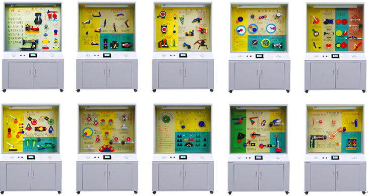 機(jī)械元件陳列柜是根據(jù)大、中專(zhuān)院校、技校、職業(yè)學(xué)校的機(jī)械原理教學(xué)大綱設(shè)計(jì)的電化教學(xué)設(shè)備。本陳列柜具有多功能語(yǔ)音播放控制系統(tǒng),語(yǔ)音解說(shuō)同步演示,采用單獨(dú)驅(qū)動(dòng)由電腦或電子設(shè)備控制運(yùn)轉(zhuǎn)演示,可由遙控控制順序自動(dòng)運(yùn)行講解,又能根據(jù)教材、教學(xué)需要而遙控任意選擇還是單獨(dú)演示。模型材料采用進(jìn)口有機(jī)板制造,板面附有必要的圖表和文字說(shuō)明,演示形象逼真,運(yùn)行可靠,制作工藝美觀,使用本陳列柜可提高教學(xué)效果,節(jié)約學(xué)時(shí)是一套現(xiàn)代化機(jī)械課程教學(xué)應(yīng)用實(shí)驗(yàn)室設(shè)備。