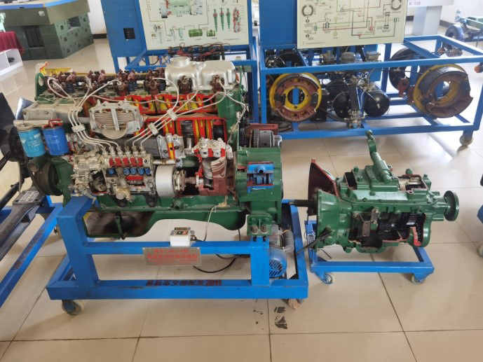 東風(fēng)天錦發(fā)動機(jī)解剖實(shí)訓(xùn)設(shè)備采用翻新東風(fēng)天錦歐3電控柴油發(fā)動機(jī)總成進(jìn)行剖面處理,各部件齊全,剖面位置合理,能全面展示發(fā)動機(jī)與變速器內(nèi)外部結(jié)構(gòu)和部件的運(yùn)動情況,適用于發(fā)動機(jī)與變速器原理和機(jī)械機(jī)構(gòu)的教學(xué)。