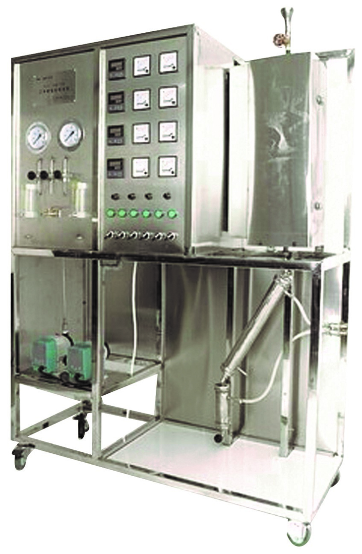 1、流化床反應(yīng)器:稀、濃相段直徑:Φ20mm、高350mm,擴大段直徑:Φ57mm,長200mm;熱電偶套管,Φ3mm,內(nèi)插Φ1mm熱電偶,不銹鋼材質(zhì)。催化劑裝載量:10-50ml。 2、反應(yīng)器加熱爐:Φ260×500mm,開啟式三段加熱,總功率:3KW,加熱形式:碳化硅爐管+金屬內(nèi)襯,最高使用溫度:600℃。 3、預(yù)熱器:304不銹鋼,內(nèi)徑Φ10mm,長度250mm,內(nèi)有防返混及防溝流裝置;使用溫度:室溫-400℃,使用壓力:常壓。 4、氣體轉(zhuǎn)子流量計量程:0.05-0.5L/min。 5、風(fēng)機:采用空氣旋渦泵;功率:370W;最大風(fēng)壓:11.76KPa;最大風(fēng)量:48m3/h。 6、微型隔膜計量泵;功率:30W;最大流量:3L/h;沖程頻率:120n/min。 7、濕式氣體流量計:額定流量:0.5m3/h,容積:5L/r,精度:±1%。 8、冷凝器:φ40×400mm;氣液分離器:φ50×150mm。 9、各項操作及壓力、流量的顯示、調(diào)節(jié)、控制全在控制屏面板進行。 10、框架為304不銹鋼材質(zhì),結(jié)構(gòu)緊湊,外形美觀,流程簡單、操作方便。 11、外形尺寸:1600×600×1800mm(長×寬×高),外形為可移動式設(shè)計,帶3寸雙剎車輪。 |