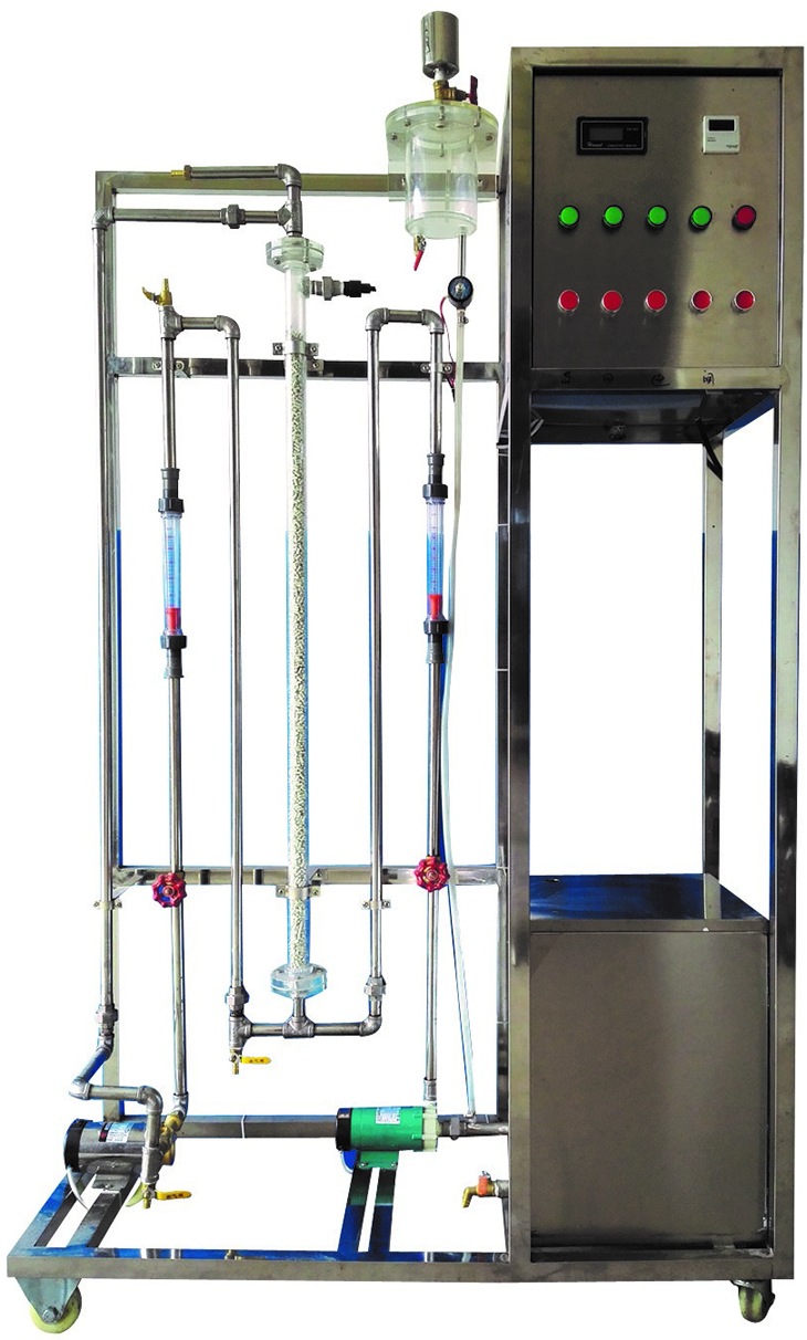 1、運(yùn)行環(huán)境:溫度0-40℃,相對濕度:≤90%RH,電源:電壓:220V;電流:15A。 2、管式反應(yīng)器:直徑φ35mm,長度1200mm;填料類型及尺寸:拉西環(huán),Ф4mm。 3、水泵:微型磁力泵,流量12L/min,揚(yáng)程6m,功率30W。 4、循環(huán)泵:流量12L/min,揚(yáng)程10m,功率90W。 5、水流量:6-60L/h和25~250L/h,液體轉(zhuǎn)子流量計,觀察、控制流量。 6、電導(dǎo)率儀:數(shù)字電導(dǎo)率檢測儀,測定示蹤劑的含量。 7、LWB電磁閥(24v)和三通閥控制切換示蹤劑,數(shù)顯計測器控制示蹤劑加入量。 8、各項(xiàng)操作及顯示、調(diào)節(jié)、控制全在控制屏面板進(jìn)行。 9、框架為304不銹鋼材質(zhì),結(jié)構(gòu)緊湊,外形美觀,流程簡單、操作方便。 10、外形尺寸:1200×500×1600mm(長×寬×高),外形為可移動式設(shè)計,帶3寸雙剎車輪。 |