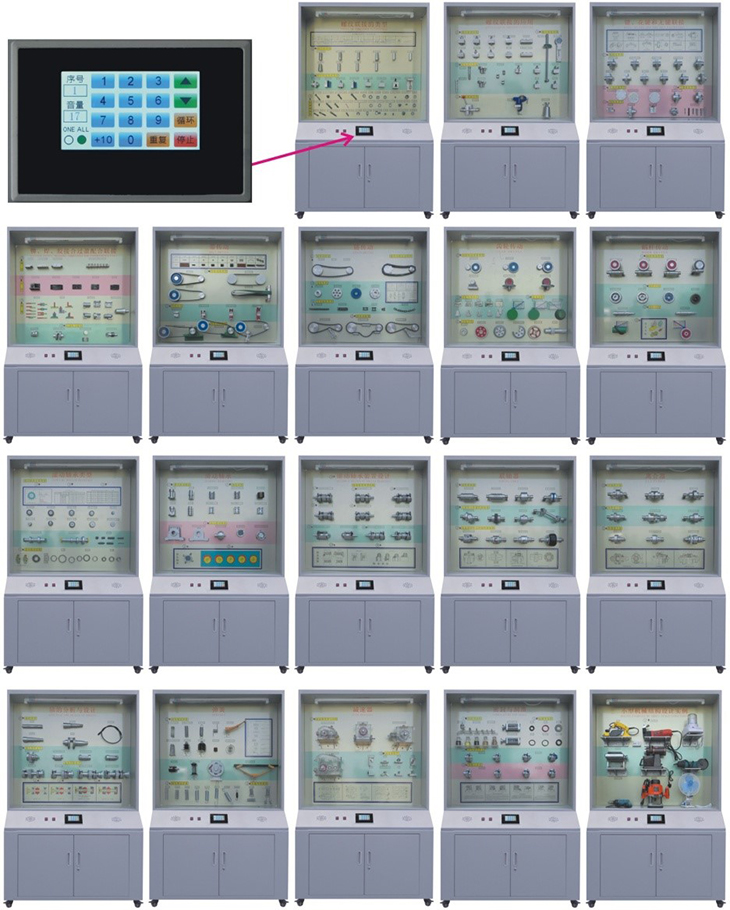 機(jī)械設(shè)計(jì)零件陳列柜,是根據(jù)機(jī)械設(shè)計(jì)(零件)課程基本要求設(shè)計(jì)制造的實(shí)驗(yàn)設(shè)備。陳列柜通過(guò)機(jī)械零件模型或?qū)嵨,配合相?yīng)的圖文資料,形象地展示與解說(shuō)機(jī)械設(shè)計(jì)的基本知識(shí),加強(qiáng)學(xué)生對(duì)通用機(jī)械零件的類(lèi)型、結(jié)構(gòu)特點(diǎn)及其設(shè)計(jì)的感性認(rèn)知,為進(jìn)一步學(xué)習(xí)機(jī)械設(shè)計(jì)奠定基礎(chǔ)。