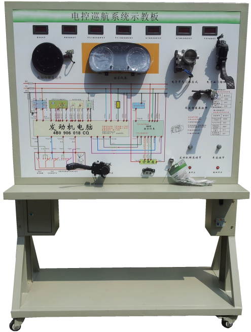 2.示教板面板采用4mm厚耐腐蝕、耐創(chuàng)擊、耐污染、防火、防潮的高級(jí)鋁塑板,表面經(jīng)特殊工藝噴涂底漆處理;面板打印有永不褪色的彩色電路圖;學(xué)員可直觀對(duì)照電路圖和實(shí)物,認(rèn)識(shí)和分析汽車(chē)電子巡航系統(tǒng)的工作原理。