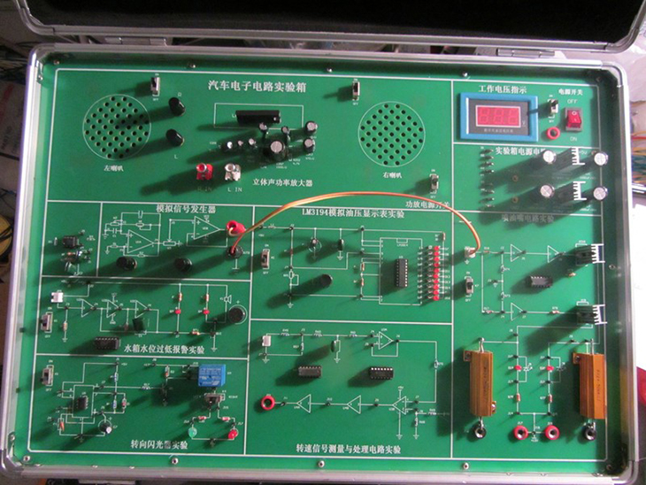 汽車電子電路實驗箱結合汽車電學的典型基本電路,由淺到深地設計了二極管和三極管基本實驗、線性集成穩(wěn)壓電源實驗、噴油器驅動實驗、轉速信號測量與處理實驗、水箱水位過低報警實驗、轉向閃光器實驗等六個實驗項目,提供了一個給學生提高動手能力,深入理解汽車電學基礎知識的實驗平臺。