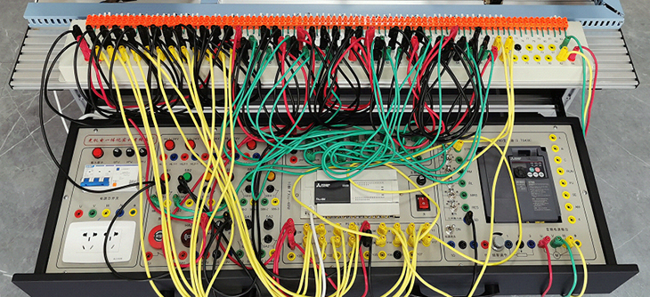 3.開放性:該實(shí)驗(yàn)裝置PLC模塊I/O端子、變頻器的接線端子、各常用模塊與PLC的連接端子、傳感器、按鈕開關(guān)、指示燈元件等端子全部開放,均采用護(hù)套插座導(dǎo)線連接,可進(jìn)行電氣線路控制、電氣線路設(shè)計(jì)等內(nèi)容實(shí)訓(xùn)。