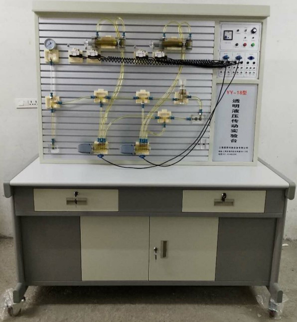 4、實驗元件均為透明有機材料制成,便于了解掌握幾十種常用液壓元件的結(jié)構(gòu),性能及用途。掌握幾十種基本回路的工作原理,實驗組裝回路快捷、方便。
