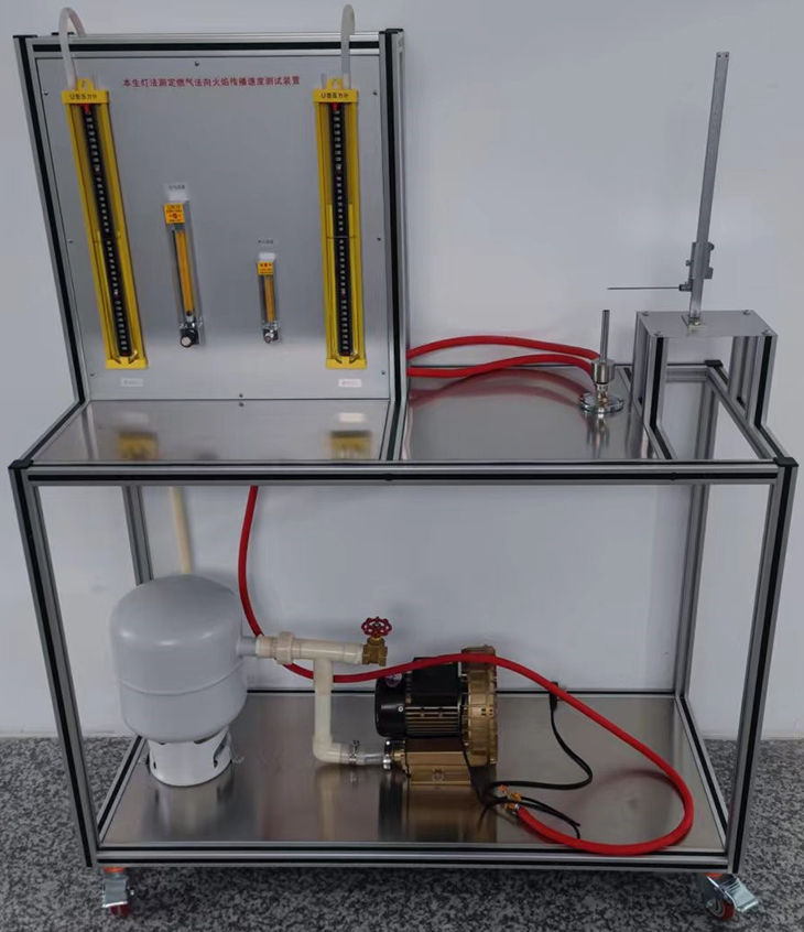 1、主要配置: 實驗臺由本生燈、旋渦氣泵、浮子氣體流量計、U型管壓差計、測高尺等組成。